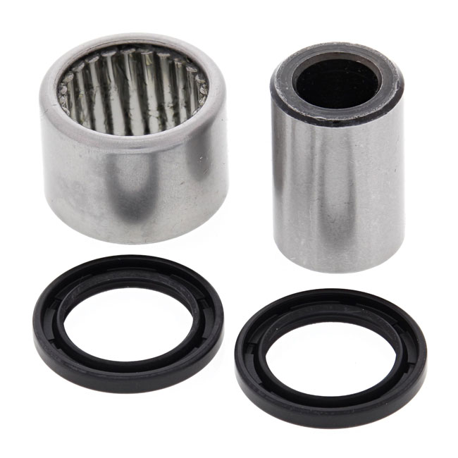 Direct replacement for the OEM components. Kit includes all seals; needle bearing and needle bearing shaft as required to rebuild the lower rear shock bearing.