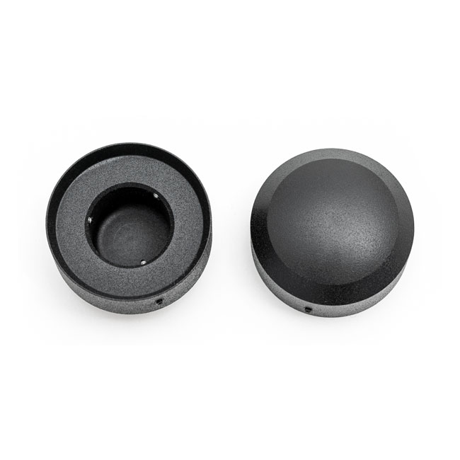 Killer Custom, fork tube cap bolt coversFork tube caps to cover upper fork bolts. Stealth black powder coated precision CNC machined billet aluminum construction. Installs with a set-screw.