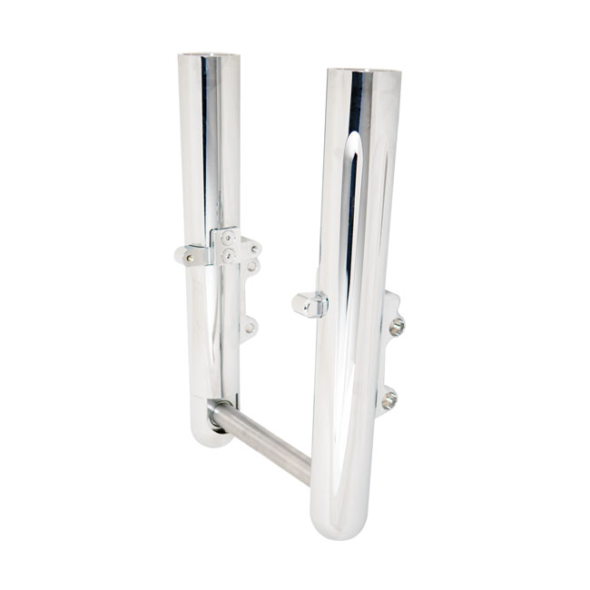 Arlen Ness, 49mm hot legs dual disc deep cut, chromeCustom tapered lower fork sliders with a hidden axle for a clean appearance. Note: Style compatible with Arlen Ness upper fork slider covers; which are separately available.