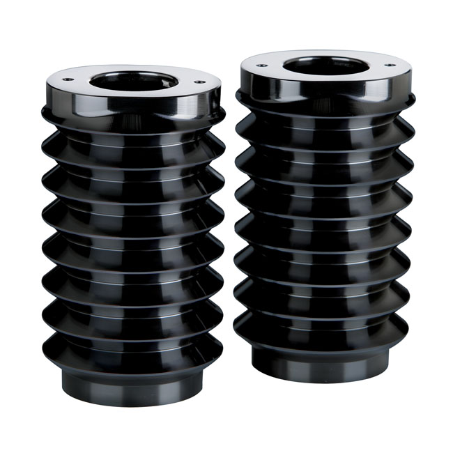 Arlen Ness, Retro fork boots. Black contrast machinedBlack Contrast Machined. CNC machined aluminum lightweight upper fork slider covers. Note: Style compatible with stock and Arlen Ness 'Hot Legs' lower fork sliders.