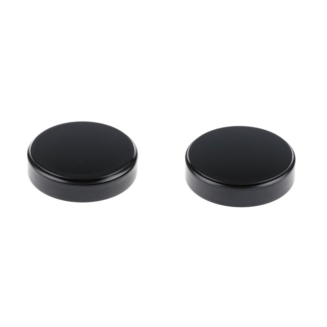 Gloss black powder coated CNC machined aluminum covers. Cover the top of the fork tubes where they protrude the top triple tree for a smoother; more finished look. Installs with a hidden set-screw.