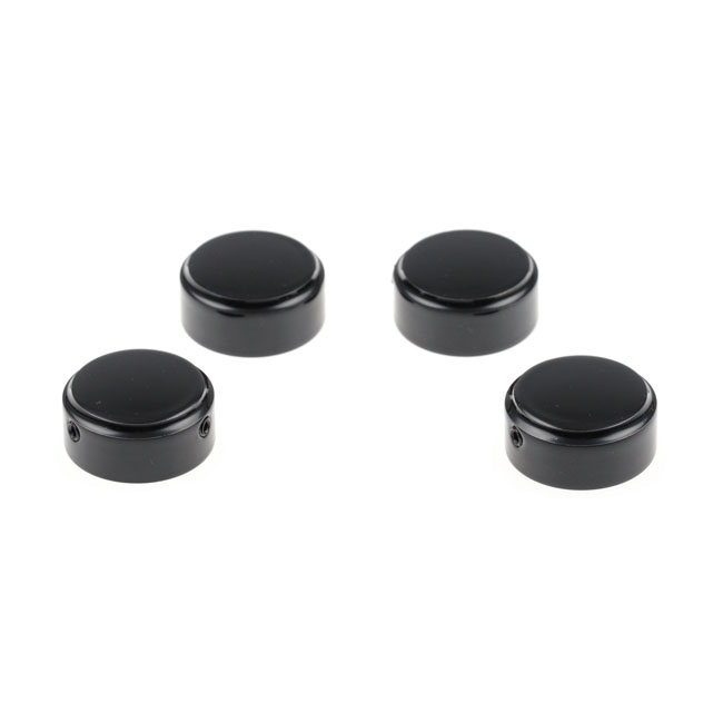 Gloss black powder coated 5-axis CNC machined aluminum covers. Hides the original mount bolts and provides a much smoother look. Installs with set-screws. Includes: - 4x covers - 4x set-screws