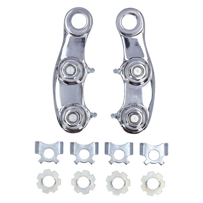 Replacement rocket set for +16" & +20" Springer forks. Chr.Chrome plated finish. Includes rocker side plates only. For 3/4" (19mm) wheel axle. Compatible with overstock +16" and + 18" reproduction style Springers.