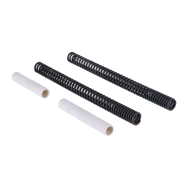 Progressive rate fork springs of superior quality. Precision wound and made of high quality chrome silicon wire. Provides a smooth ride but the progressive rate helps prevent bottoming out when taking big bumps. Each kit comes with progressive fork springs and necessary spacers.