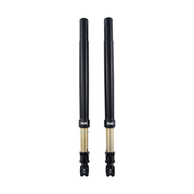 Black anodized (Blackline). Öhlins offers a high quality 43 mm Upside Down / inverted universal front fork for any custom builder that wants to give the bike supreme inverted suspension in the familiar Öhlins Racing design. The technology used is proven throughout the years and works perfectly in a whole range of custom applications. The fork allows tuning by allowing adjustment of spring preload; compression and rebound damping adjustment to best match the rider's preferences. Note: Does not include brake caliper or fender mounts for maximum adaptability. - Length 765 mm - Spring rate 12 N/mm - Fitted spring 08866-02 (MCS 963139)- Fully adjustable preload; compression & rebound. - Stroke 120 mm - Blackline design; with gold anodized finish - Top clamp diameter 50mm - Lower clamp diameter 54mm - Wheel axle diameter 32mm. Note: Does not include brake caliper or fender mounts for maximum adaptability. Note: Please contact Motorcycle Storehouse Tech Support if you want to add Öhlins 988984 KR8 Component Kit (upgraded triple tree set); for 14-up H-D Tourings; to your order. Tech Support can advise you on correct spring set-up for a specific rider weight and; if required; mods for Bagger Racing applications.