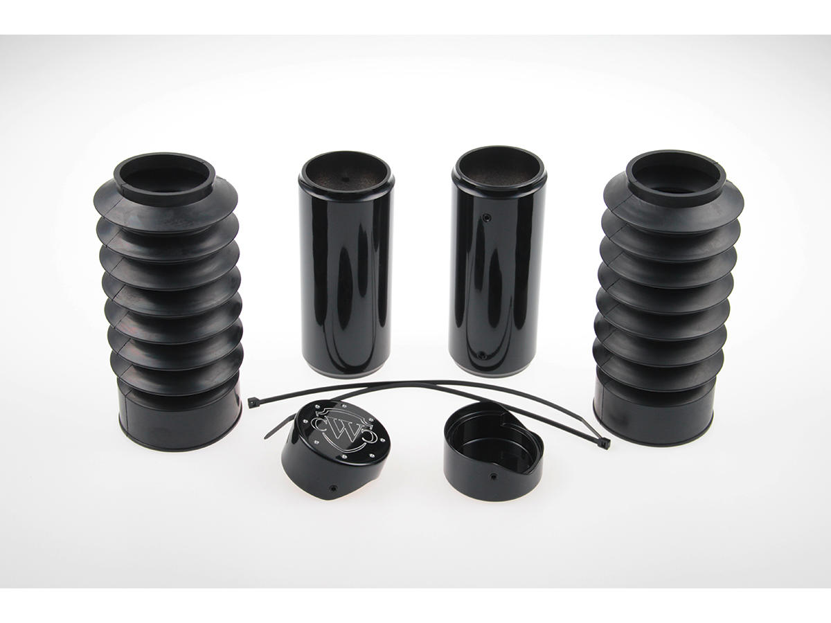 CULT WERK 6-Piece Fork Covers with lower Fork Rubbers Plain Black Gloss Powder Coated