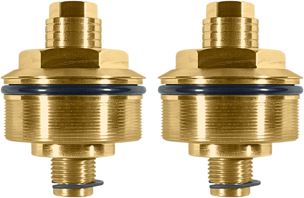 - Diese Einsteller ersetzen die Original-Gabelrohrstopfen und ermöglichen eine Feineinstellung der vorderen Federung mit einer Vorspannung von fast einem Zoll.