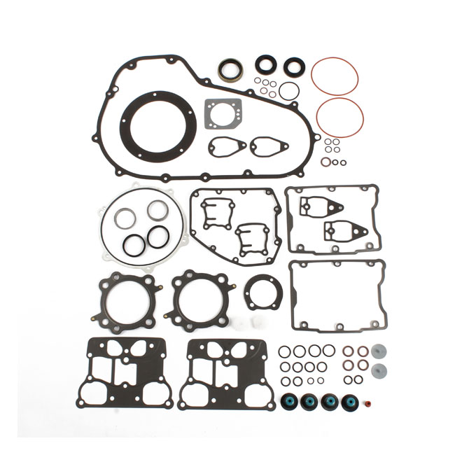 This EST (Extreme-Sealing-Technology) gasket set is complete with all gaskets; seals and o-rings that are used on this model; including primary gaskets. It's the easy way to do a complete overhaul and have all gaskets that are necessary in one package to reassemble the engine. This EST gasket set contains MLS (Multi-Layer-Steel) .040" thick head gaskets which eliminates the use of dowel pin o-rings. Base gaskets are SLS (Single-Layer-Steel) .020" thick. They have .005" of high temperature Viton rubber on both sides and are the strongest on the market. Rocker cover gaskets are also .020" thick SLS. They will not weep; extrude; tear or become brittle over time. Exhaust gaskets will not hinder exhaust gas flow and will not fray into the exhaust port. Valve seals utilize Viton rubber and outer springs for a perfect seal. With 99-10 style breather gaskets