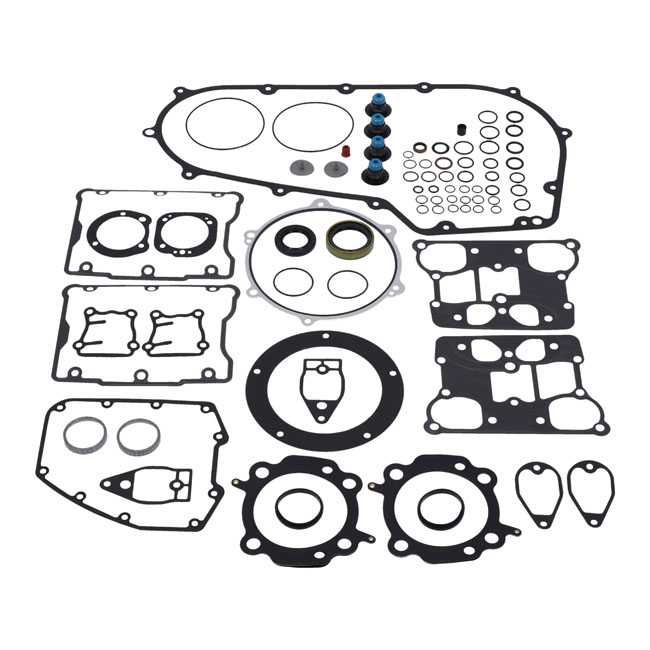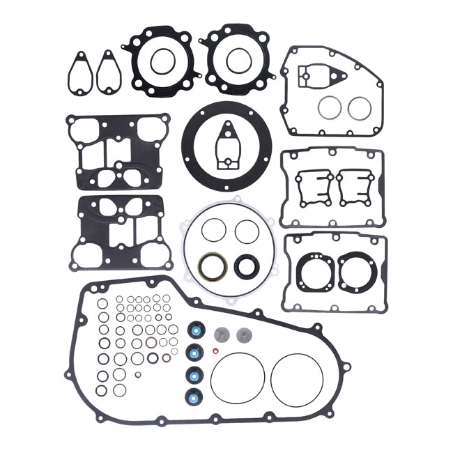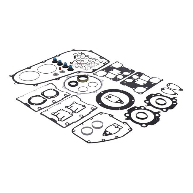 This EST (Extreme-Sealing-Technology) gasket set is complete with all gaskets; seals and o-rings that are used on this model; including primary gaskets. It's the easy way to do a complete overhaul and have all gaskets that are necessary in one package to reassemble the engine. This EST gasket set contains MLS (Multi-Layer-Steel) .030" thick head gaskets which eliminates the use of dowel pin o-rings. Base gaskets are SLS (Single-Layer-Steel) .020" thick. They have .005" of high temperature Viton rubber on both sides and are the strongest on the market. Rocker cover gaskets are also .020" thick SLS. They will not weep; extrude; tear or become brittle over time. Exhaust gaskets will not hinder exhaust gas flow and will not fray into the exhaust port. Valve seals utilize Viton rubber and outer springs for a perfect seal. With 99-10 style breather gaskets