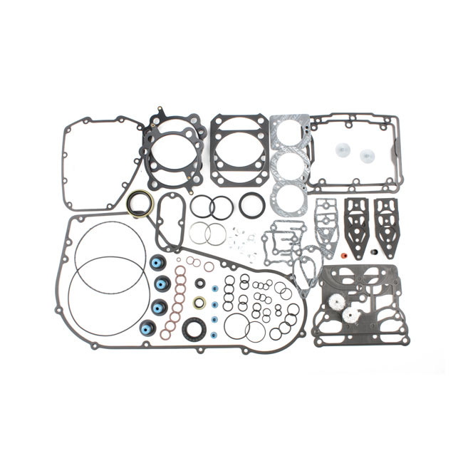 This EST (Extreme-Sealing-Technology) gasket set is complete with all gaskets; seals and o-rings that are used on this model; including primary gaskets. It's the easy way to do a complete overhaul and have all gaskets that are necessary in one package to reassemble the engine. This EST gasket set contains MLS (Multi-Layer-Steel) .040" thick head gaskets which eliminates the use of dowel pin o-rings. Base gaskets are SLS (Single-Layer-Steel) .010" thick. They have .005" of high temperature Viton rubber on both sides and are the strongest on the market. Rocker cover gaskets are also .020" thick SLS. They will not weep; extrude; tear or become brittle over time. Exhaust gaskets will not hinder exhaust gas flow and will not fray into the exhaust port. Valve seals utilize Viton rubber and outer springs for a perfect seal. With 99-10 style breather gaskets