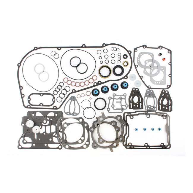 This EST (Extreme-Sealing-Technology) gasket set is complete with all gaskets; seals and o-rings that are used on this model; including primary gaskets. It's the easy way to do a complete overhaul and have all gaskets that are necessary in one package to reassemble the engine. This EST gasket set contains MLS (Multi-Layer-Steel) .030" thick head gaskets which eliminates the use of dowel pin o-rings. Base gaskets are SLS (Single-Layer-Steel) .010" thick. They have .005" of high temperature Viton rubber on both sides and are the strongest on the market. Rocker cover gaskets are also .020" thick SLS. They will not weep; extrude; tear or become brittle over time. Exhaust gaskets will not hinder exhaust gas flow and will not fray into the exhaust port. Valve seals utilize Viton rubber and outer springs for a perfect seal. With 99-10 style breather gaskets