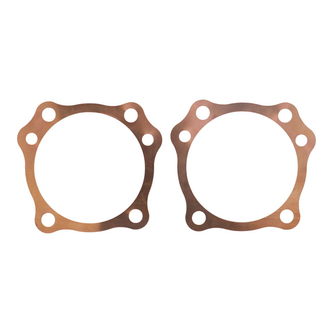 S&S, cylinder head gaskets. 4-3/8" bore .045".045" thick copper. With S&S base pattern.