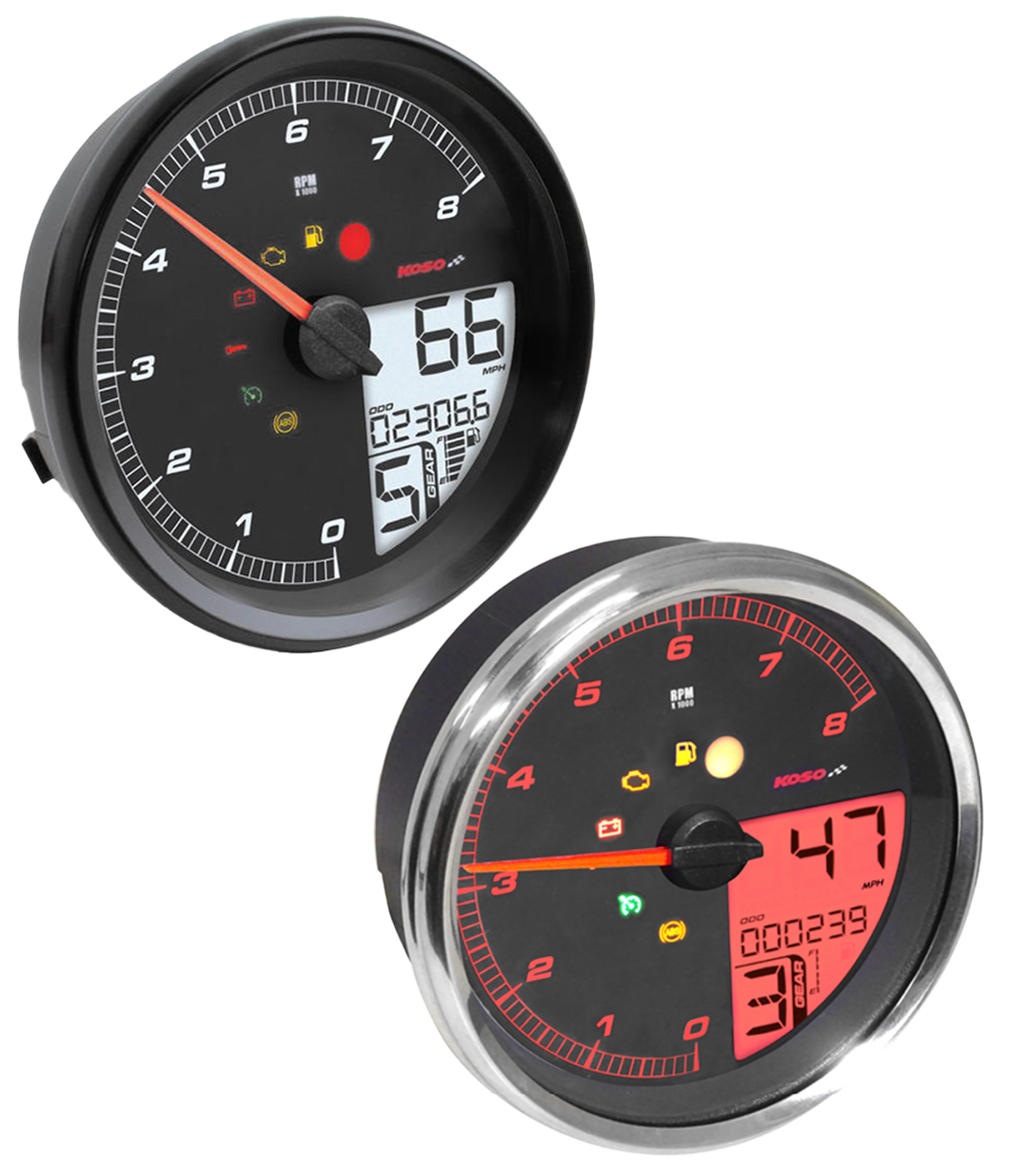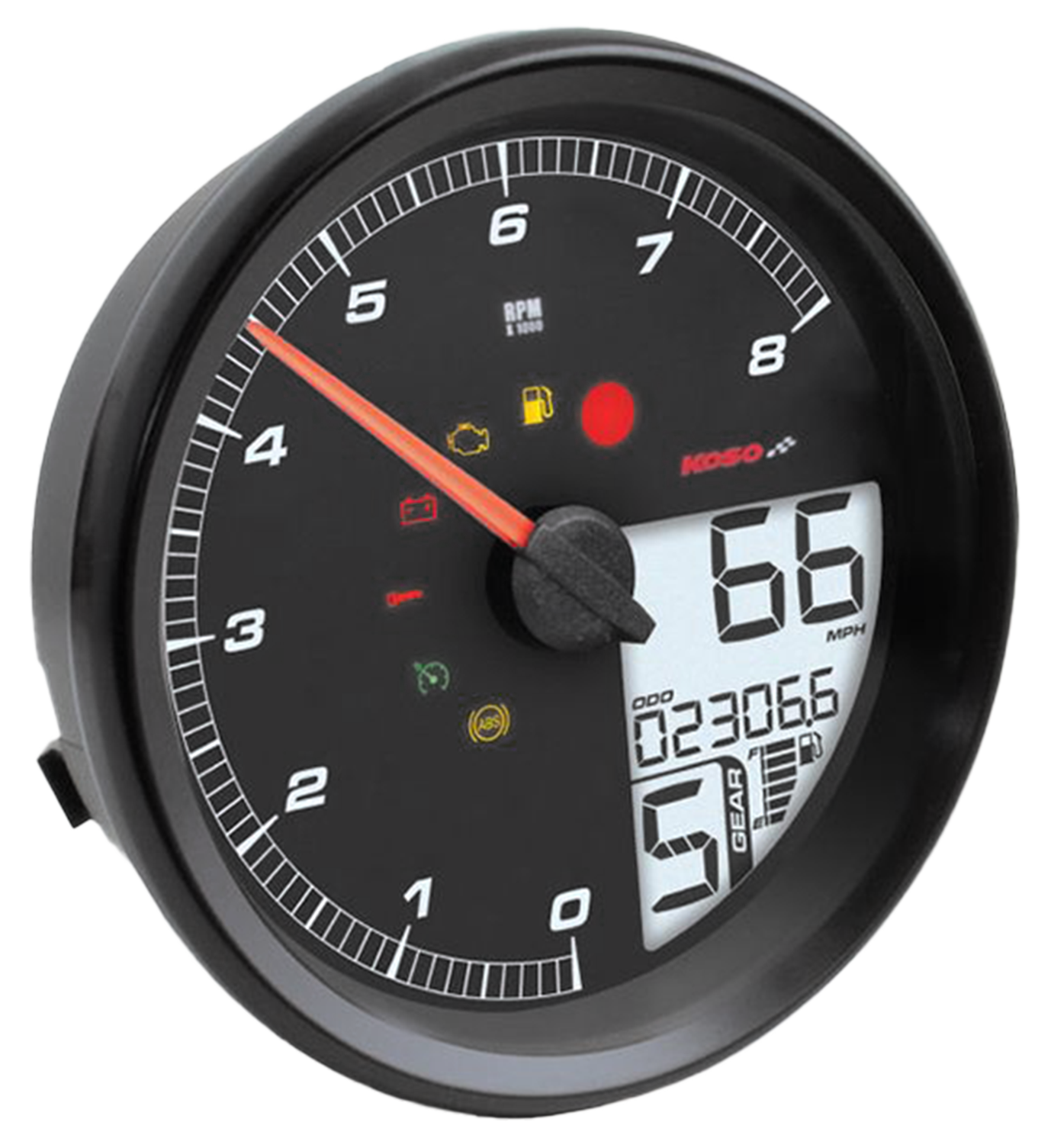 Das HD-05-Instrumentenpanel passt für Dyna, Softail und Road King mit Fat Bob Tankarmaturenbrett. Es handelt sich um eine Plug-n-Play Lösung, die Tachometer und Drehzahlmesser in einem Gerät vereint. Das Set wird direkt an den vorhandenen Kabelbaum angeschlossen und interagiert mit dem Motorradsystem. Es eignet sich besonders für Modelle mit erhöhtem Tank. Der Tachometer zeigt Geschwindigkeiten bis zu 360 km/h (225 mph) an, der Kilometerzähler bis zu 999.999 km/Meilen und die Tageskilometerzähler A/B bis zu 9.999,9 km/Meilen. Der Drehzahlmesser reicht bis zu 8.000 U/min und verfügt über einen integrierten Drehzahlbegrenzer/Schaltblitz, der von 2.000 bis 8.000 U/min einstellbar ist. Zusätzlich bietet es eine Tankanzeige, eine Anzeige des durchschnittlichen Kraftstoffverbrauchs, eine 12/24 Stunden-Uhr, ein Voltmeter und wählbare Wartungsintervalle. Kontrollleuchten für Reserve, Motor, Spannung, Wegfahrsperre, Tempomat, ABS und Drehzahlwarnung sind ebenfalls vorhanden. Umschaltbare Hintergrundbeleuchtungsfarben: rot / orange / gelb / grün / blau / indigo / lila / weiß.