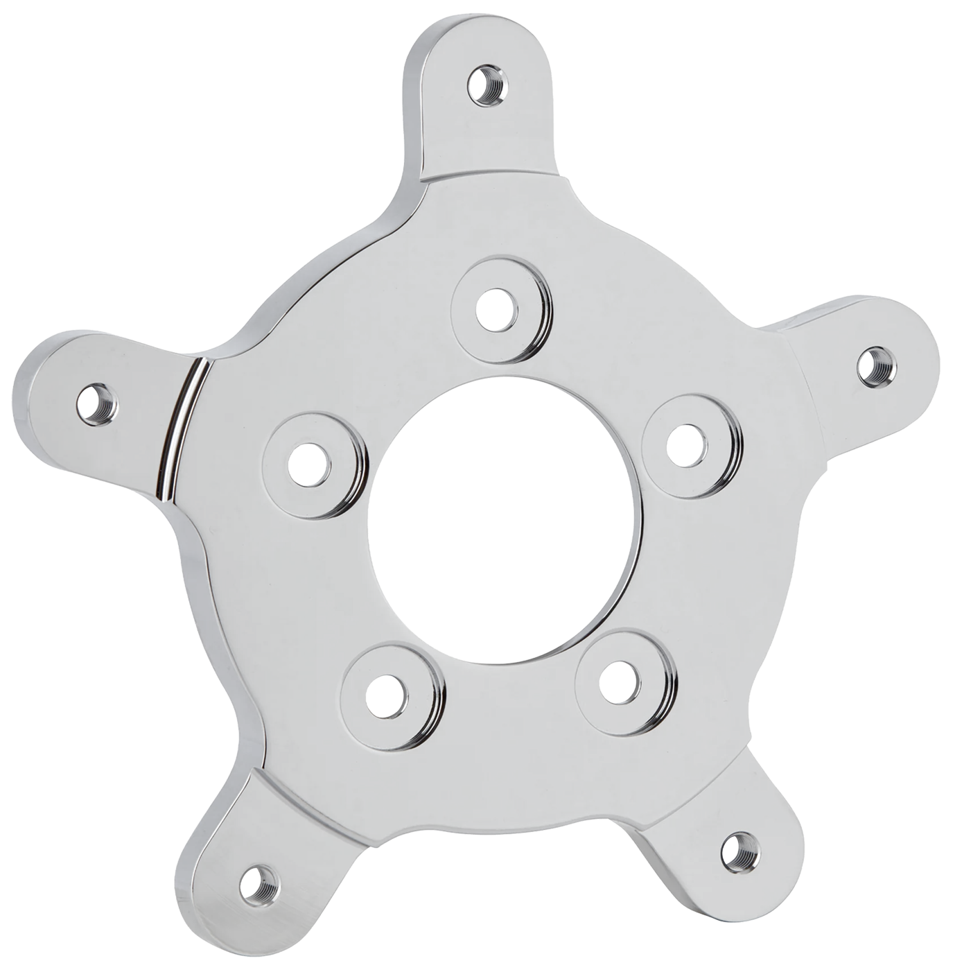 Allows the use of factory Touring 2014 to present spoke mount type 11.8" brake rotors on aftermarket custom wheels or any other 5-bolt wheels . Forged from aluminum and CNC machined to a perfect finish and fit. Includes hub mounting hardware and accepts stock rotor hardware.