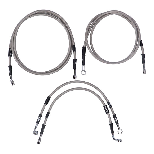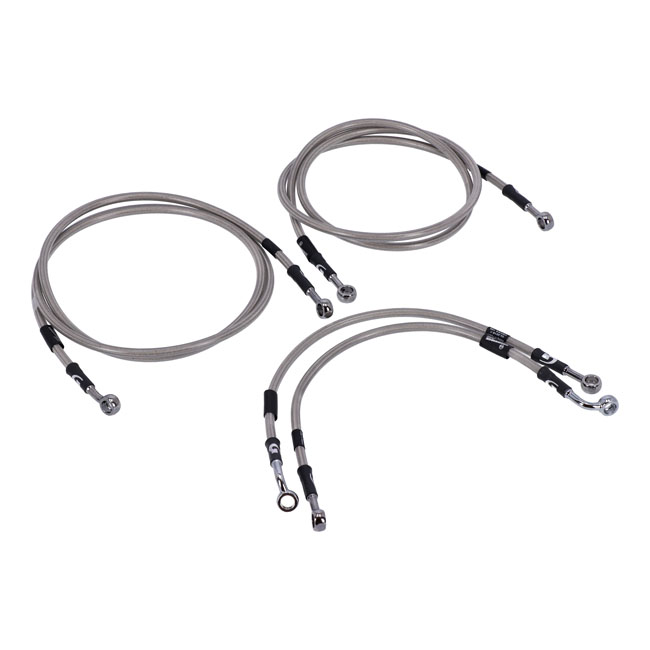 Stainless clear coated brake lines with high polished stainless steel hose ends. Ready to install; with correct length and fittings for stock applications.Note: Upper front (handlebar master cylinder) to ABS box + ABS box to brake caliper(s). Note: With approval. Check your local MCS dealer or the MCS sales department for exact type of approval and validity on bike model and years on the test report.