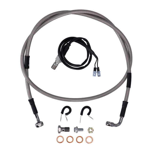 Stainless clear coated brake lines with high polished stainless steel hose ends. Ready to install; with correct length and fittings for stock applications.- Produced to TMVSS106 standards. Note: With approval. Check your local MCS dealer or the MCS sales department for exact type of approval and validity on bike model and years on the test report.
