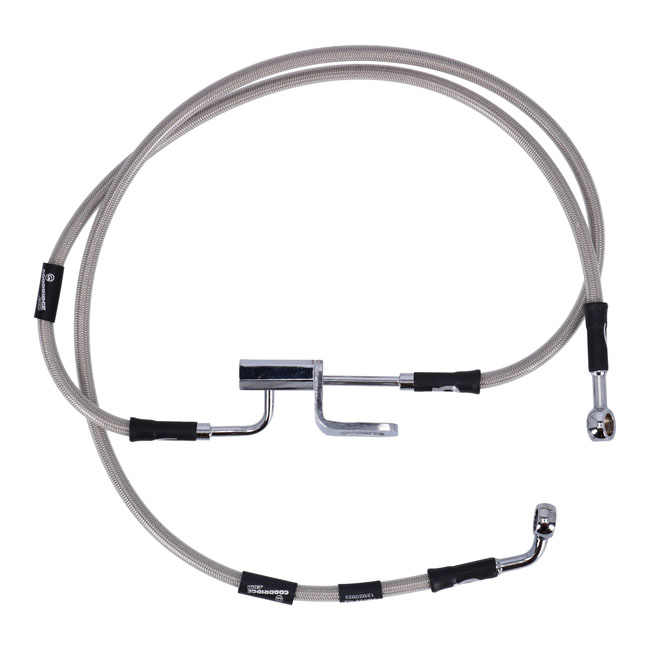 Stainless clear coated brake lines with high polished stainless steel hose ends. Ready to install; with correct length and fittings for stock applications.- Produced to TMVSS106 standards. Note: With approval. Check your local MCS dealer or the MCS sales department for exact type of approval and validity on bike model and years on the test report.