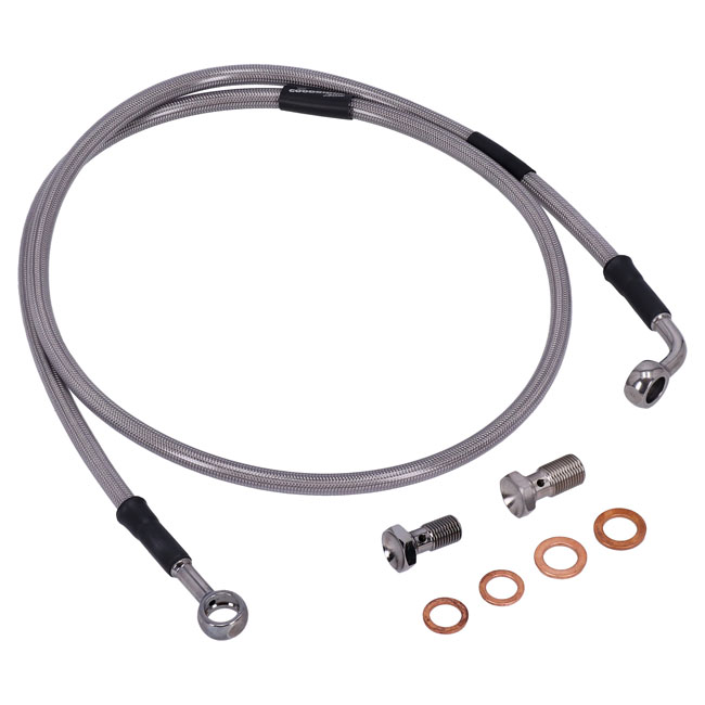 Stainless clear coated brake lines with high polished stainless steel hose ends. Ready to install; with correct length and fittings for stock applications.Note: With approval. Check your local MCS dealer or the MCS sales department for exact type of approval and validity on bike model and years on the test report.