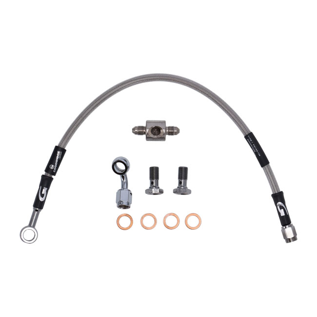 Stainless clear coated brake lines with high polished stainless steel hose ends. Ready to install; with correct length and fittings for stock applications.- Produced to TMVSS106 standards. Note: With approval. Check your local MCS dealer or the MCS sales department for exact type of approval and validity on bike model and years on the test report.