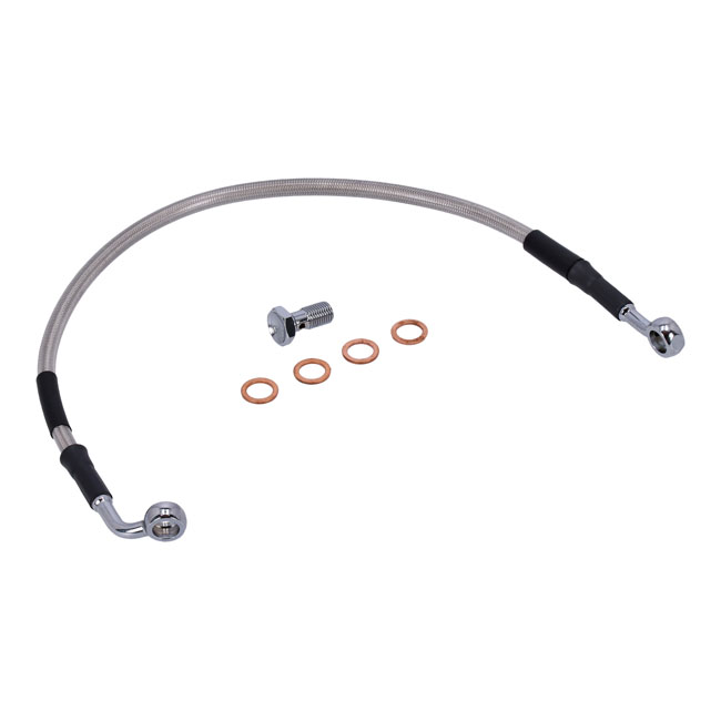 Stainless clear coated brake lines with high polished stainless steel hose ends. Ready to install; with correct length and fittings for stock applications.- Produced to TMVSS106 standards. Note: With approval. Check your local MCS dealer or the MCS sales department for exact type of approval and validity on bike model and years on the test report.