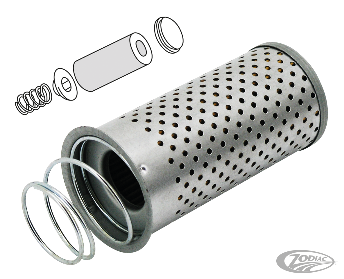 Dieser Ölfilter ersetzt alle internen Komponenten des Filters, der im Öltank von KHs, frühen Sportstern und Big Twins eingebaut ist. Anstatt der Unterlegscheibe (OEM 6817), der oberen Dichtung (OEM 63881-67), der unteren Dichtung (OEM 63846-67), des Filterelements (OEM 63840-53 oder 63835-87T) und der Feder (OEM 63831-67) müssen Sie also nur ein Teil einbauen. Dieser Ölfilter in Premiumqualität wird aus den besten verfügbaren Materialien hergestellt und ist speziell für die Verwendung mit Mehrbereichs- sowie Einbereichsölen, sogar Schweröl SAE 70, konzipiert. Wenn Sie eine Ölfilterung in Premiumqualität für Ihre Vintage-Harley wünschen, ist dieser Filter die richtige Wahl.