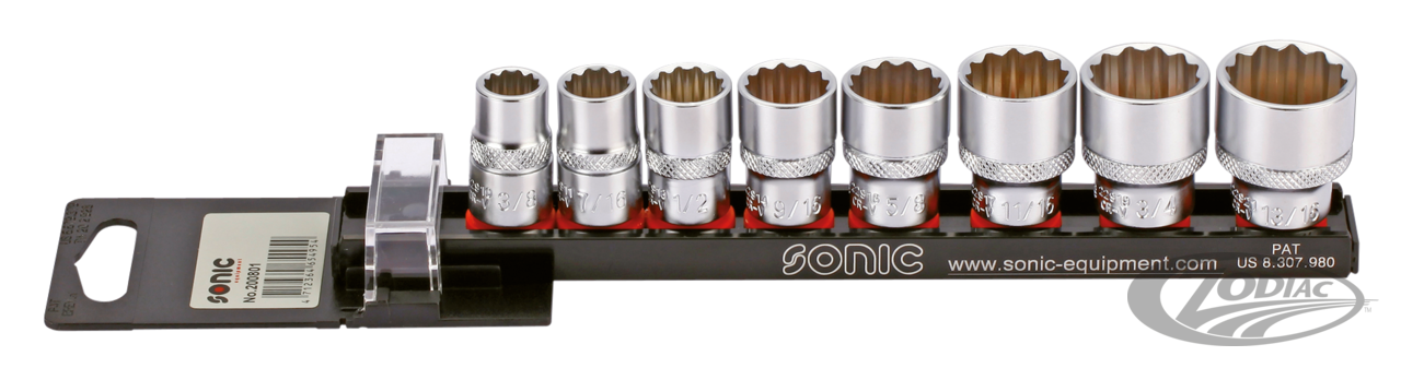 Sonic Equipment Steckschlüssel und Bits werden aus Chromvanadium Stahl präzise auf engste Toleranzen für perfekte Passung mit hochwertigem Finish gefertigt. Sie besitzen einen ergonomisch gerändelten Anti-Rutsch Rand, sind extrem stabil, schlank und leicht um auch in beengten Situationen guten Zugriff zu gewährleisten. Bits und Steckeinsätze werden gut sortiert auf Steckleisten angeboten.
