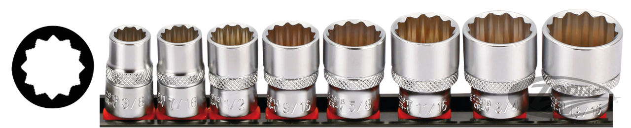 3/8" Steckschlüsselsatz 12-Kant (SAE) 8-teilig; 3/8", 7/16", 1/2", 9/16", 5/8", 11/16", 3/4" & 13/16"