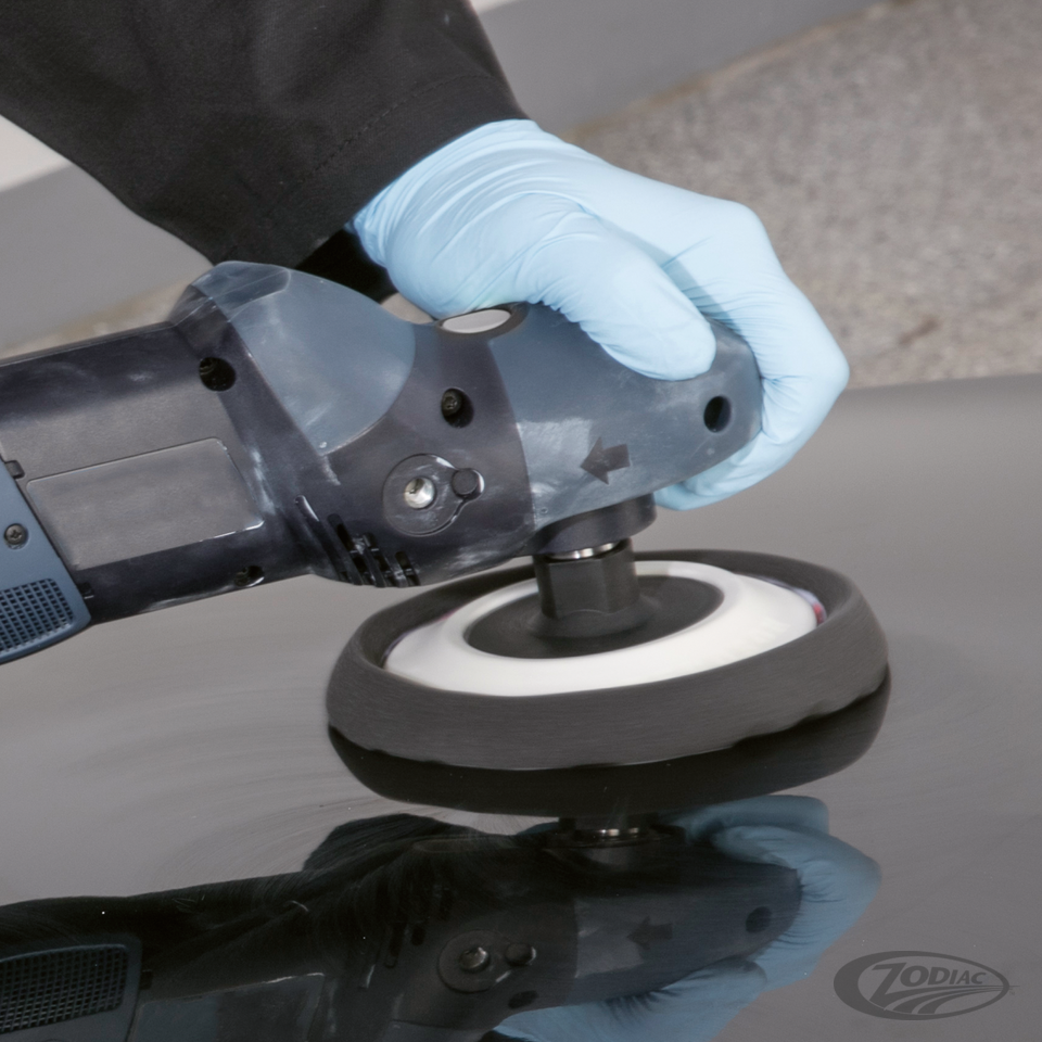 Hilfsmittel zum Auftragen von Reinigern, Polituren oder Wachsen liefern die besten Ergebnisse. Verwenden Sie einen Stützscheibe mit weichen Polierscheibe und ein Mikrofasertuch um das beste Ergebnis zu erzielen. Empfohlen wird Polierscheiben mit einem Reiniger zu verwenden.