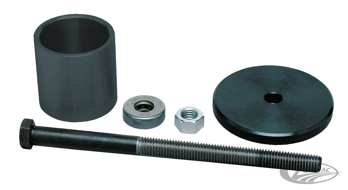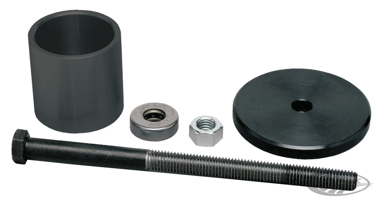 Mit diesem Werkzeug und einfachen Handwerkzeugen kann das Main Drive Gear der 2006er Dyna Modelle sowie der Softail Twin Cam Modelle ab 2007 ganz einfach in das Getriebe eingepresst werden. Auch wenn das Getriebe noch im Rahmen sitzt.