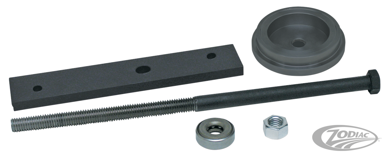 Dieses Werkzeug ermöglicht eine einfache und sichere Montage des Hauptantriebslagers im Getriebegehäuse der Dyna 2006 6-Gang sowie Twin Cam & Milwaukee Eight ab 2007. Mit diesem Werkzeug ist gewährleistet, dass sich das Lager gerade in die Bohrung setzt und nicht verkeilt und somit die Lageraufnahme beschädigt. Komplett mit Bedienungsanleitung in Englisch geliefert.