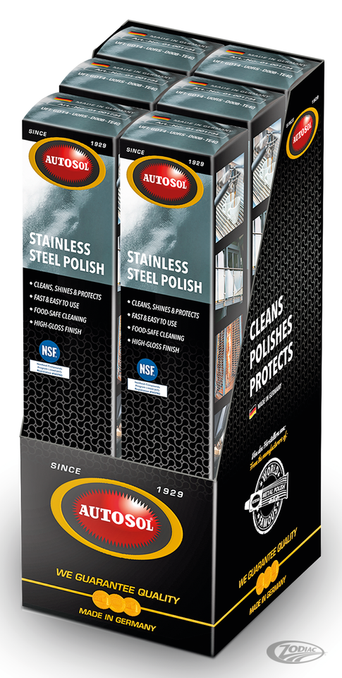 75 ml Tube Autosol Edelstahlpolitur, Händler 6er-PackTextauszug aus dem Katalog:Speziell zum Reinigen und Polieren von Edelstahl entwickelt. Hinterlässt strahlenden Hochglanz ohne die Oberfläche zu verkratzen.