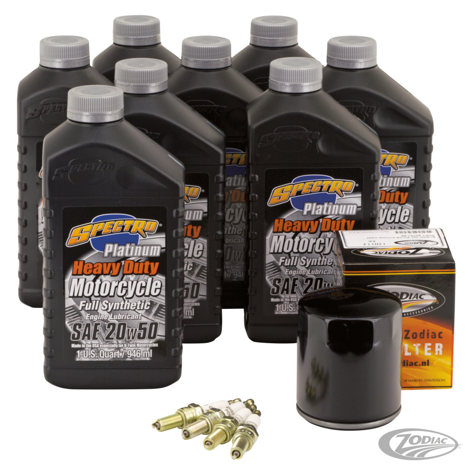 So einfach kann es sein! Nur ein Bestellnummer angeben und alle erforderlichen Parts für den Motorölwechsel, den kompletten Ölwechsel, Ölwechsel der Antriebseinheit oder kompletten Ölwechsel mit Zündkerzen erhalten. Hierfür haben wir die korrekten Öle von Spectro für die verschiedenen Zwecke in den erforderlichen Mengen zusammengesucht und mit dem entsprechenden Ölfilter in schwarzer oder verchromter Ausführung kombiniert. Zusätzlich bieten wir noch komplette Kits an die noch die entsprechenden Zündkerzen enthalten. Für alle besonders anspruchsvollen Fahrer bieten wir für 6-Gang Getriebe ab 2006 ein Platin Plus Service Kit an, welches das Getriebegeräuschreduzierende Platinöl enthält.