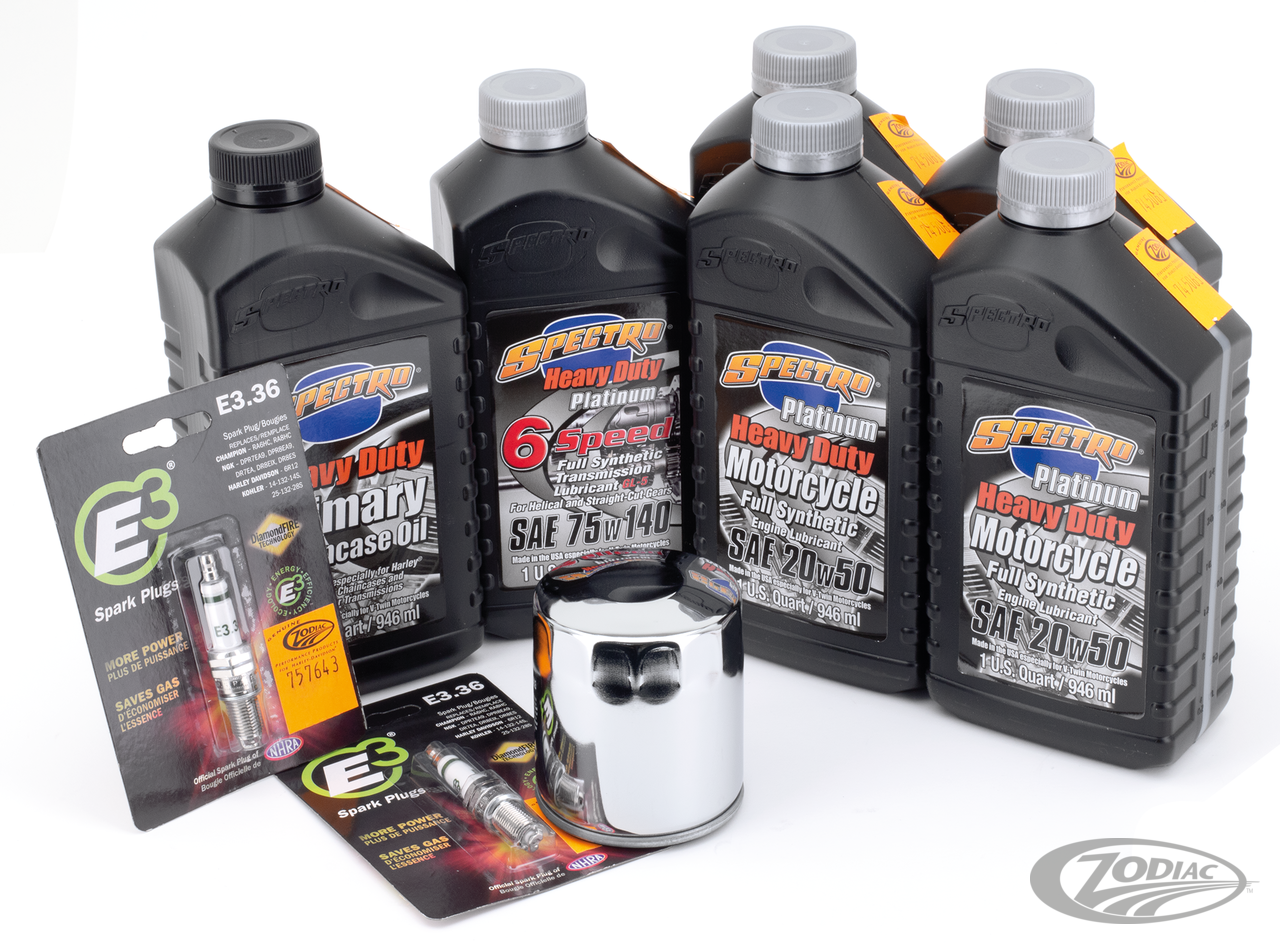 So einfach kann es sein! Nur ein Bestellnummer angeben und alle erforderlichen Parts für den Motorölwechsel, den kompletten Ölwechsel, Ölwechsel der Antriebseinheit oder kompletten Ölwechsel mit Zündkerzen erhalten. Hierfür haben wir die korrekten Öle von Spectro für die verschiedenen Zwecke in den erforderlichen Mengen zusammengesucht und mit dem entsprechenden Ölfilter in schwarzer oder verchromter Ausführung kombiniert. Zusätzlich bieten wir noch komplette Kits an die noch die entsprechenden Zündkerzen enthalten. Für alle besonders anspruchsvollen Fahrer bieten wir für 6-Gang Getriebe ab 2006 ein Platin Plus Service Kit an, welches das Getriebegeräuschreduzierende Platinöl enthält.