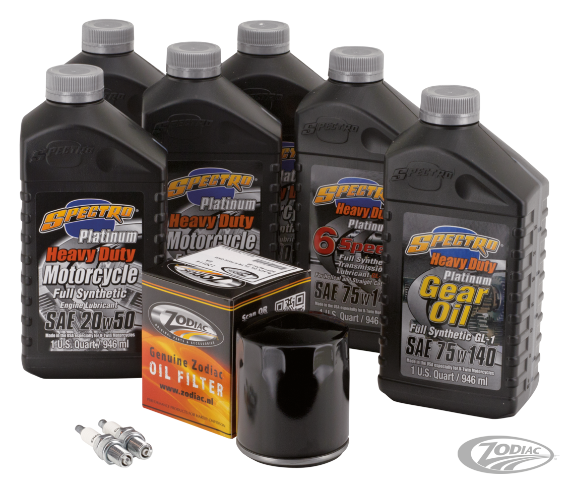 So einfach kann es sein! Nur ein Bestellnummer angeben und alle erforderlichen Parts für den Motorölwechsel, den kompletten Ölwechsel, Ölwechsel der Antriebseinheit oder kompletten Ölwechsel mit Zündkerzen erhalten. Hierfür haben wir die korrekten Öle von Spectro für die verschiedenen Zwecke in den erforderlichen Mengen zusammengesucht und mit dem entsprechenden Ölfilter in schwarzer oder verchromter Ausführung kombiniert. Zusätzlich bieten wir noch komplette Kits an die noch die entsprechenden Zündkerzen enthalten. Für alle besonders anspruchsvollen Fahrer bieten wir für 6-Gang Getriebe ab 2006 ein Platin Plus Service Kit an, welches das Getriebegeräuschreduzierende Platinöl enthält.