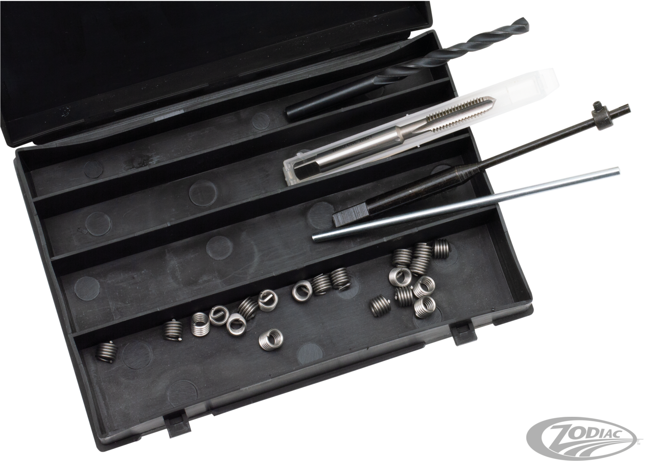 Reparieren Sie defekte Gewinde auf eine besonders professionelle Art. Diese Reparaturkits beinhalten einen speziellen Gewindeschneider, Einsetzwerkzeug sowie 10 Gewindeeinsätze. Für alle diejenigen die bereits die Werkzeuge besitzen bieten wir zudem Nachfüllpacks separat an.