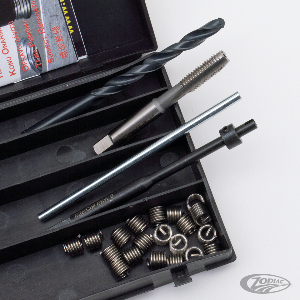 Reparieren Sie defekte Gewinde auf eine besonders professionelle Art. Diese Reparaturkits beinhalten einen speziellen Gewindeschneider, Einsetzwerkzeug sowie 10 Gewindeeinsätze. Für alle diejenigen die bereits die Werkzeuge besitzen bieten wir zudem Nachfüllpacks separat an.