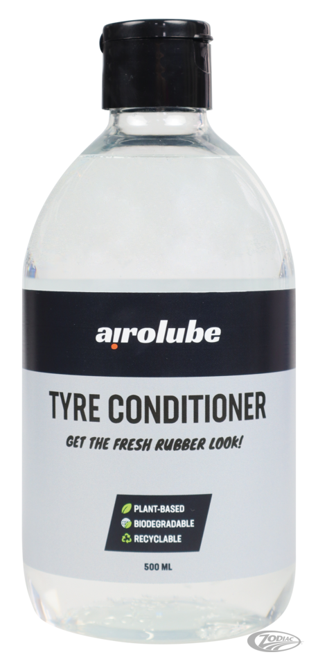 Holen Sie sich den frischen Gummi-Look mit dem Airolube-Reifen Conditioner. Dieser natürliche Reifenglanz ist schmutz- und wasserabweisend und schützt den Gummi vor dem Austrocknen. Tragen Sie das Reifenglanzmittel auf trockene Reifen auf und sehen Sie zu, wie sie im Handumdrehen ihren fabrikneuen Glanz wiedererlangen. Wie alle anderen Airolube-Produkte ist der Reifen-Conditioner biologisch abbaubar. Auch die Verpackung ist vollständig recycelbar.
