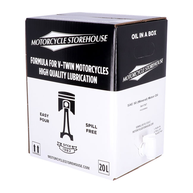 20 liter Bag-In-Box. Single (mono) grade engine oil. Meets or exceeds JASO MA. High quality lubrication; specially developed for use in stock and aftermarket H-D V-Twin models. Our oil engineers used quality base oils blended with the right additives to achieve the lubrication characteristics that can be trusted to give the ultimate protection for your bike in all circumstances. Proudly engineered and manufactured in The Netherlands. Note: This 20 liter Bag-In-Box packing system is environmentally friendlier alternative for the classic plastic canister. It allows practical storage on a shelf and comes with an inner plastic bladder bag with a pre-installed tap; for easily tapping the required amount of oil. This proven & dependable Bag-In-Box system saves 89% on plastic; the sturdy and protective outer box has convenient carrying handles and is 100% recyclable.