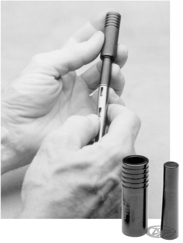 This tool will help you to easily install the outer snap ring on all Big Twin oil pump shafts, without "over-stretching" the ring. Just apply oil to the ring expander, hold up to the end of the shaft, then push ring onto the shaft with sleeve.