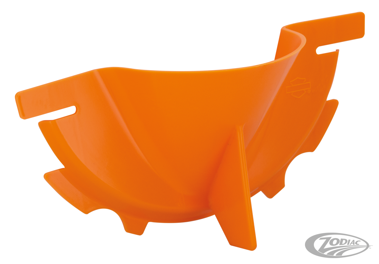 These reusable funnels make it a lot easier to fill or add oil to your primary chain case with no mess or spill. They simply snap into the derby cover opening, allowing hands-free filling. The convenient tab allows you to place the funnel in position with one hand, and the flat cone shape makes it easy to poor oil into the chain case. The smooth plastic surface is easy to clean after use.