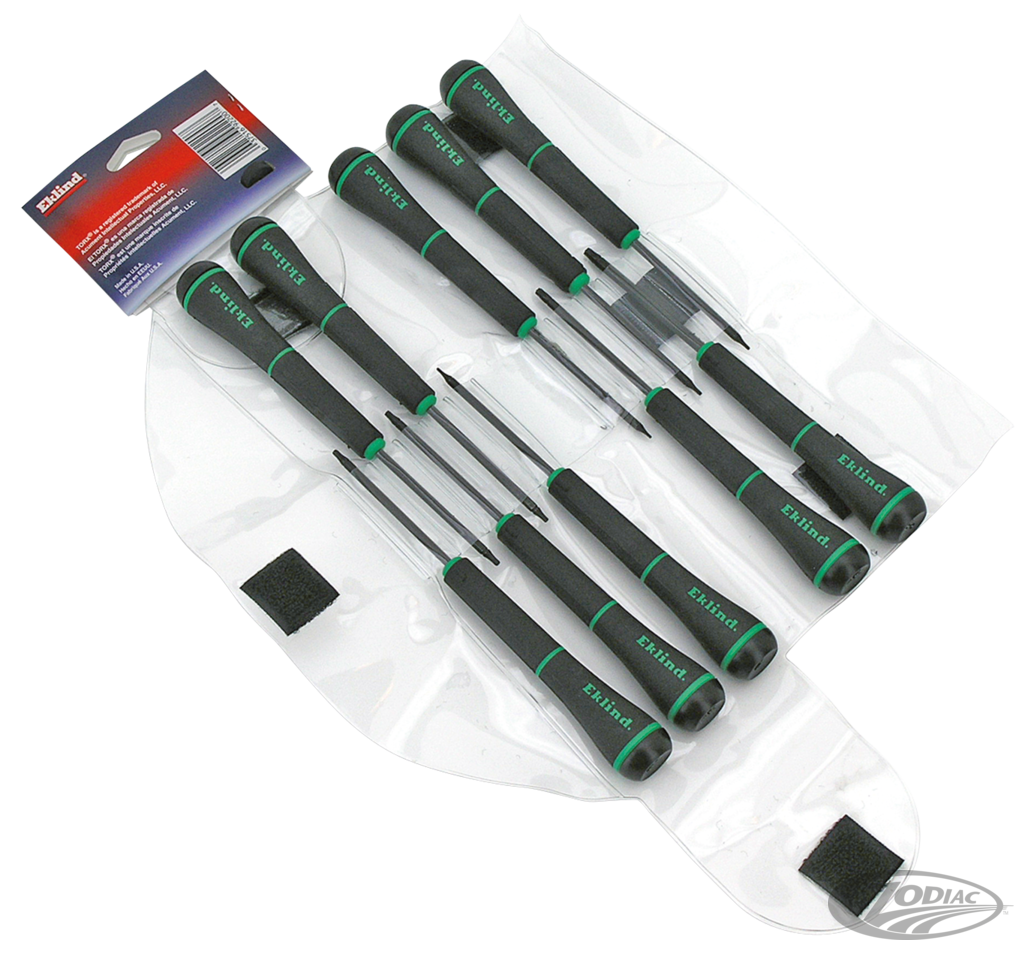 Eklind Professional Precision Series tools are manufactured with the same high quality standards that has made Eklind Tool Company the leading manufacturer of American made Hex key products. The ergonomic design handle has a big, tapered shape and a rotating end cap to maintain fingertip control. This offers professional comfort and control. End caps are permanently marked for quick and easy identification. Sold in sets.