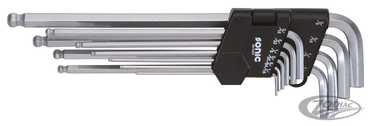 10-piece inch size extra long allen head key set; 1/16", 5/64", 3/32", 1/8", 5/32", 3/16", 7/32", 1/4", 5/16" & 3/8"