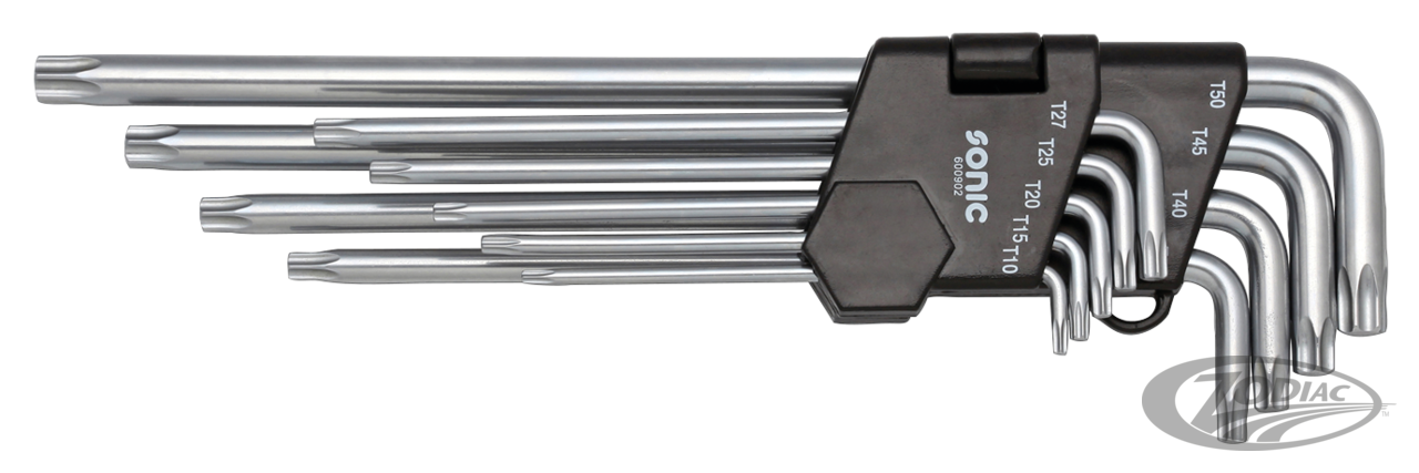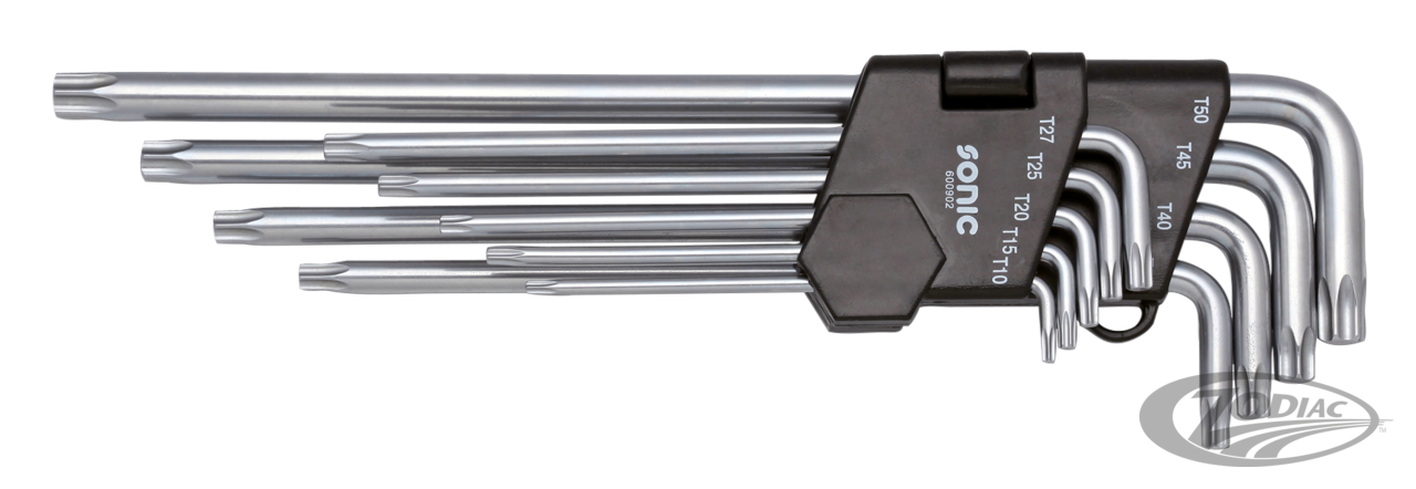 9-piece extra long Torx head key set; T10, T15, T20, T25, T27, T30, T40, T45 & T50