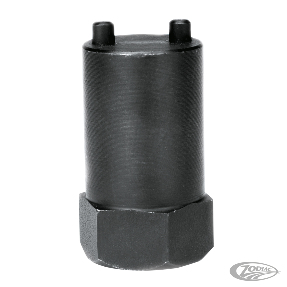 This tool has two pins to match the front fork spring retainer screw on early drum brake Sportsters and Superglides. Locate this tool with the pins facing down on top of the spring retainers inside the fork tube. You will then be able to remove or install this retainer to service the fork assembly.