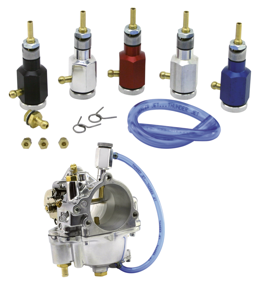 Thunderjet's patentierter dritter Benzinkreislauf beinhaltet ein, sich selbst regulierendes System, welches dem Problem der Gemischabmagerung und Leistungsverlust im mittleren und oberen Drehzahlbereich entgegenwirkt. Das System deckt ein breites Spektrum an atmosphärischen Bedingungen und Höhenlagen ab. Kann an alle S&S, Bendix/Zenith Vergaser montiert werden. Hinweis: S&S Super E und Super G Vergaser müssen bei Verwendung dieser Kits neu bedüst werden.