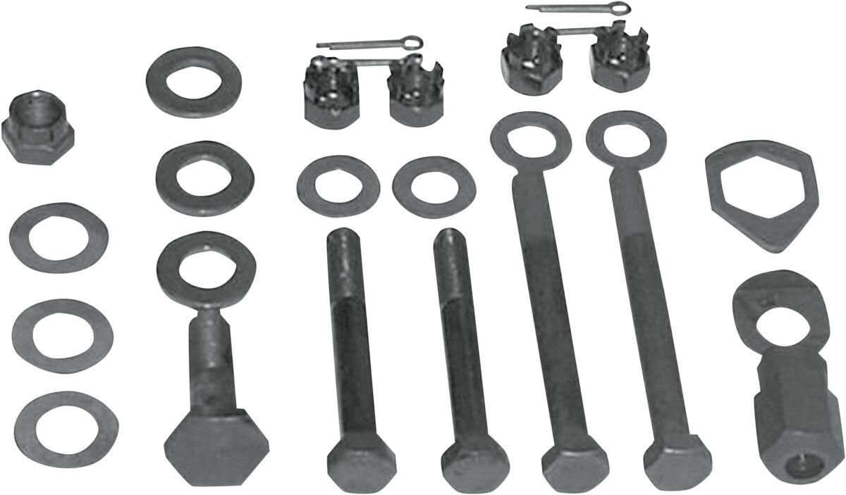 Motor Mount Bolt Kit- Kit Includes top motor mount bolt, two 3/8-24 x 31/4" bolts, two front engine mounting bolts, three 3/8" x 7/64" washers, three castle nuts, three cotter keys, one motor bolt nut, one 29/64" x 3/32" washer, one 7/16" x 1/8" washer, one 7/16" x 1/8" washer, and one locknut.