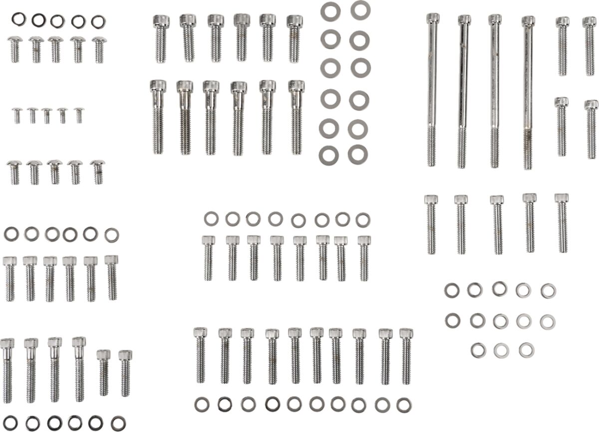 - Made in the USANot for FXSB, FXCW/C models.Kit includes bolts/washers for:• Cam Position Sensor Cover• Transmission End Cover• Clutch Cover• Derby Cover• Transmission Top• Primary Cover• Cam Cover• Lifter Block• Rocker Box Cover