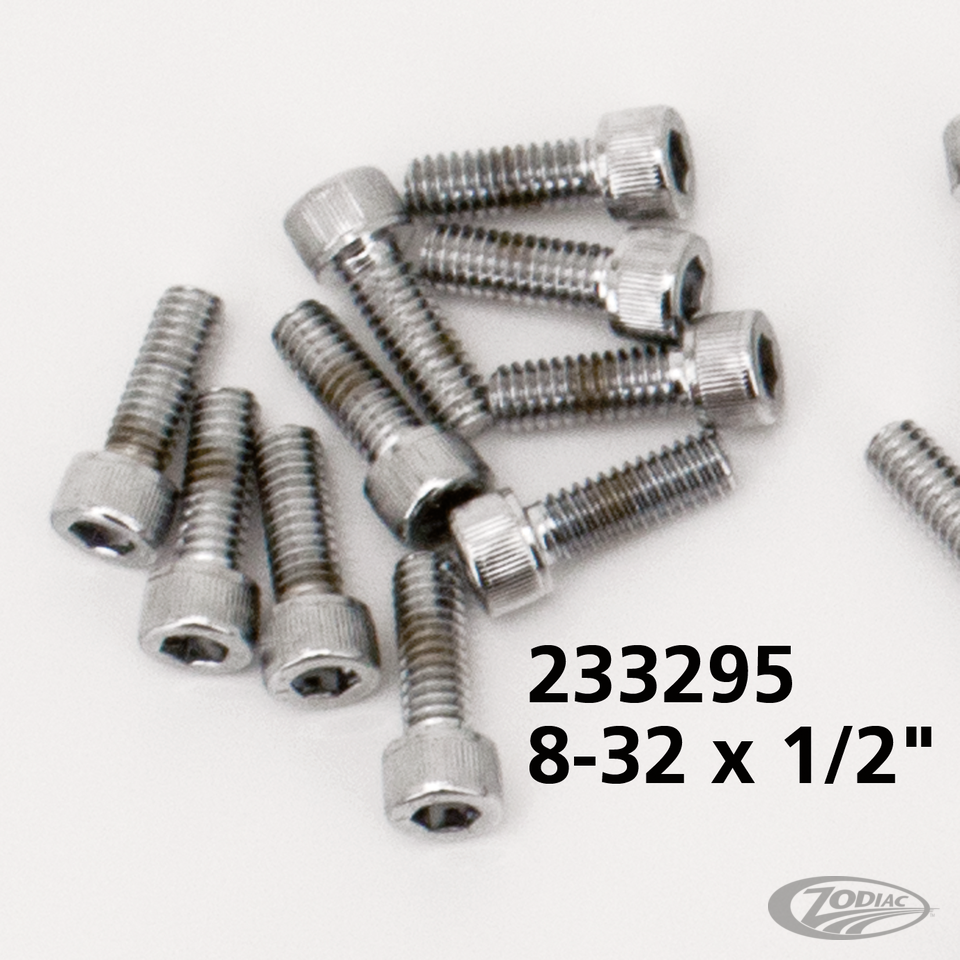10pck Chrome allen screws 8-32x1/2"