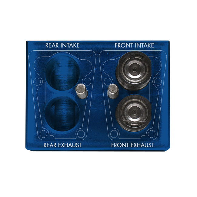 Blue anodized aluminum. With laser etched tappet locations. Used to store the tappets and anti-rotation pins when removed from the engine. Enables re-installation in the same position. Tappet locations are clearly mentioned on the holding tool.