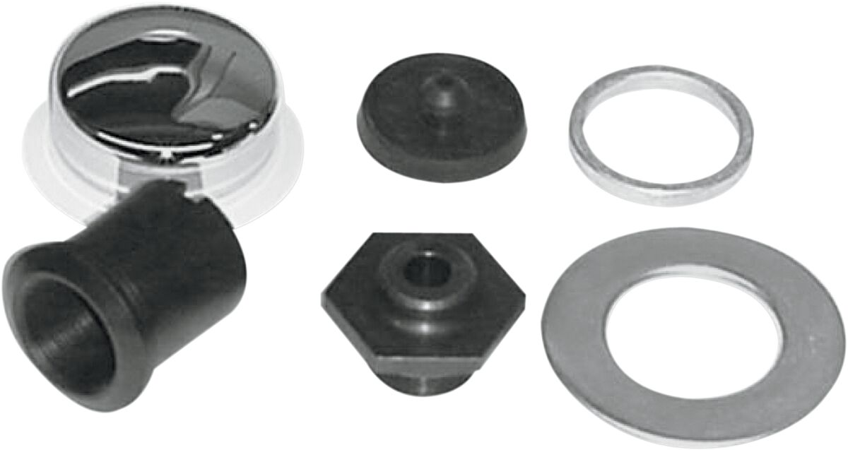 Lenkkopfschrauben- und Abdeckungssatz- Das Set beinhaltet Hülse, Lenkkopfschraube, Staubschutz, Distanzstück, Gummistopfen und verchromte Abdeckung.- Made in the USA